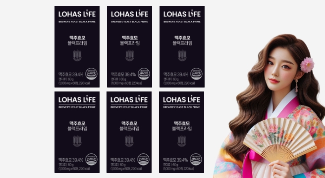 - LOHAS LIFE 맥주효모 블랙프라임 12개월분 (1000mg X 60정 X 6박스) 독일산 맥주효모 비오틴아연셀렌 100%